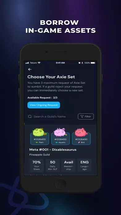 Choose and rent your favorite in-game assets (NFT) to play at your best performance without any capital needed.