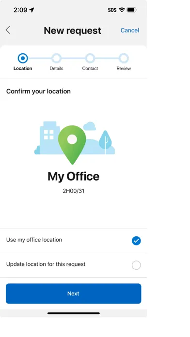Have you noticed a mess or damage in your workspace or a conference room? When you're at the office, you can use MyHub to make a facility request.