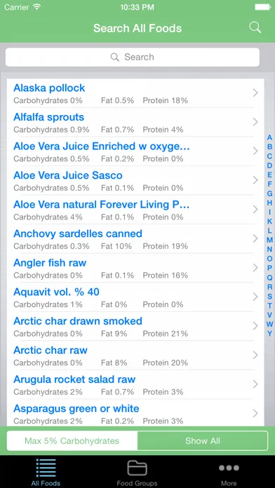 ภาพหน้าจอของ Max 5% Carbs - Low Carb Food and Nutrition Database