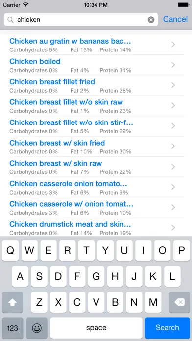 The Max 5% Carbs App makes it easy to find food and drink with low carbohydrate content. You can search among over 2000 foods in a complete food and nutrition database and easily filter out results with more than five percent carbohydrates. Nutrition facts such as carbohydrates, fat, protein and energy (calories) are available for all nutrients.