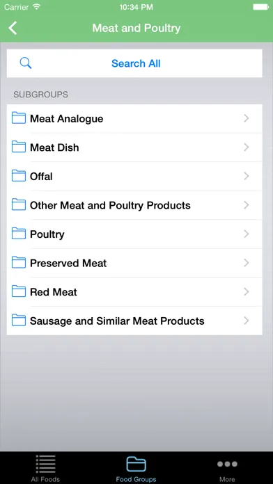 • Search by Free Text or Food Groups (13 Main Groups and over 80 Subgroups)