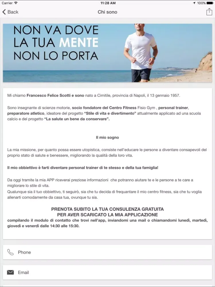 Sono insegnante di scienze motorie, socio fondatore del Centro Fitness Fisio Gym , personal trainer, preparatore atletico, ideatore del progetto “Stile di vita e divertimento” attualmente applicato ad una scuola calcio e del progetto “La salute un bene da conservare”.
