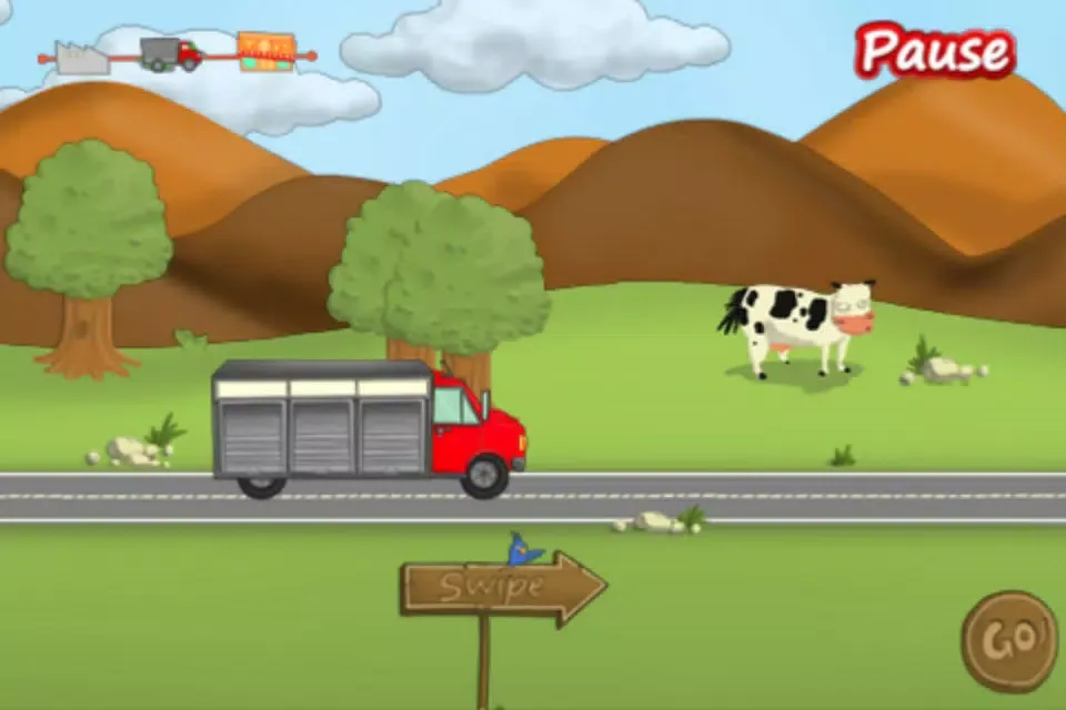 Drop off the toys at the toy store and then drive the big delivery truck back to the factory. Pass some really cute animals through the countryside drive along the delivery route.