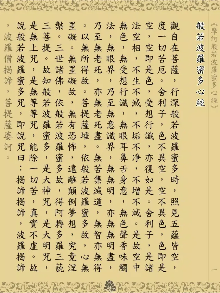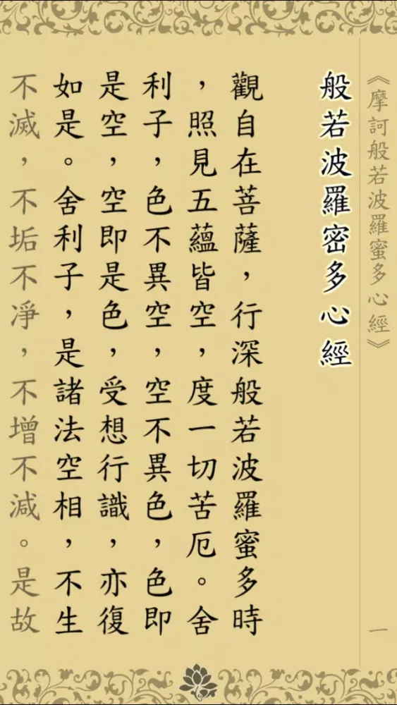 《摩訶般若波羅蜜多心經》,又稱《般若波羅密多心經》,簡稱《般若心經》、《心經》,是般若經系列中一部極為重要的經典。《心經》言簡義豐、博大精深、提綱挈領,直明「第一義諦」,集中展現了般若學的精髓,為大乘佛教出家及在家佛教徒日常背誦的佛經。「色即是空,空即是色」一句即出自該部經文。