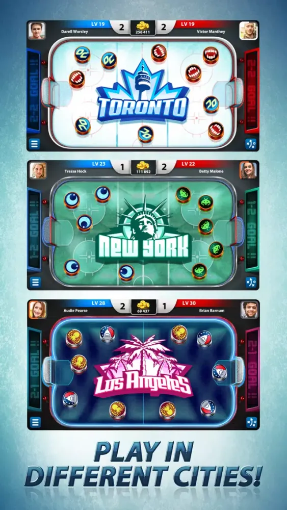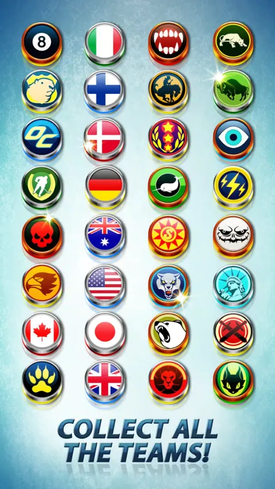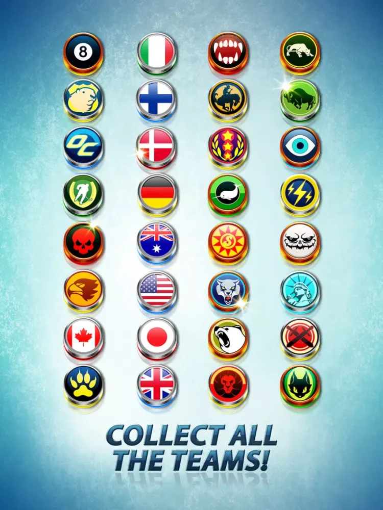Play in different arenas for bigger prizes! Win tournaments, and unlock tons of teams with unique powers and styles. Let’s hit the ice and play Hockey Stars!