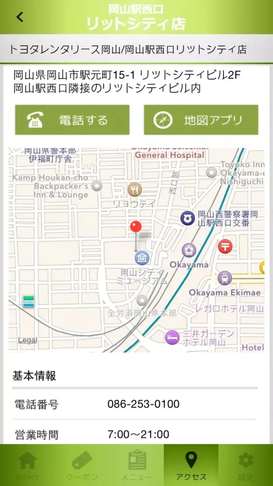 Capturas de tela do レンタカー トヨタレンタリース岡山/岡山駅西口リットシティ店