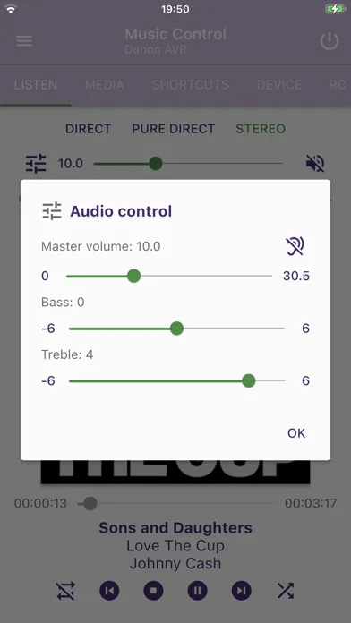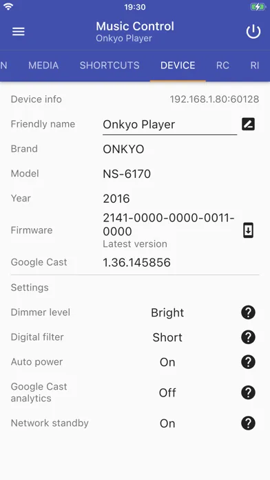 This app allows remote control of a Network Player or a Network A/V Receiver via the local network.