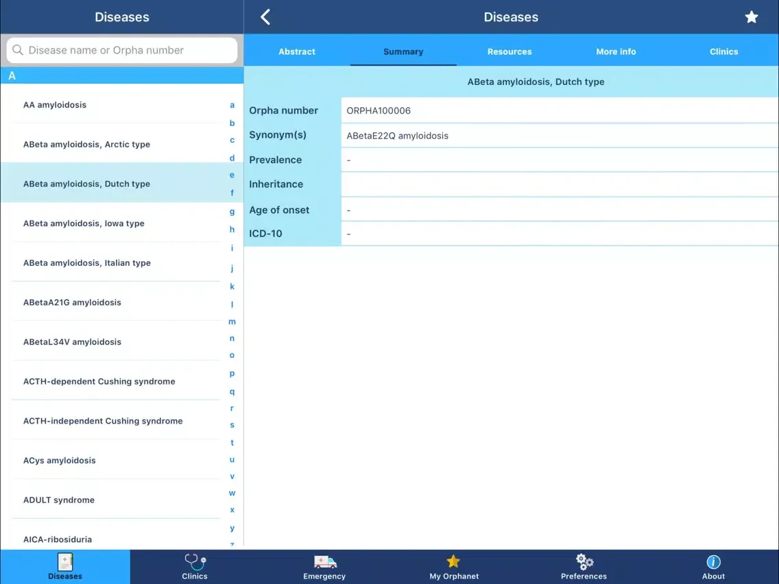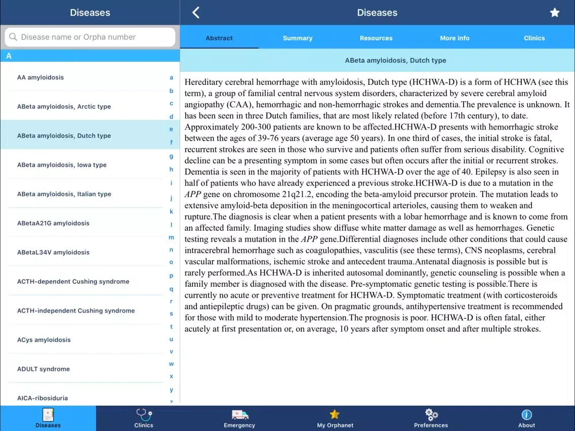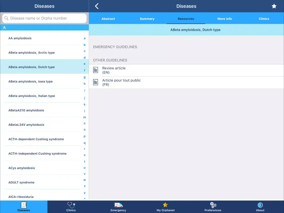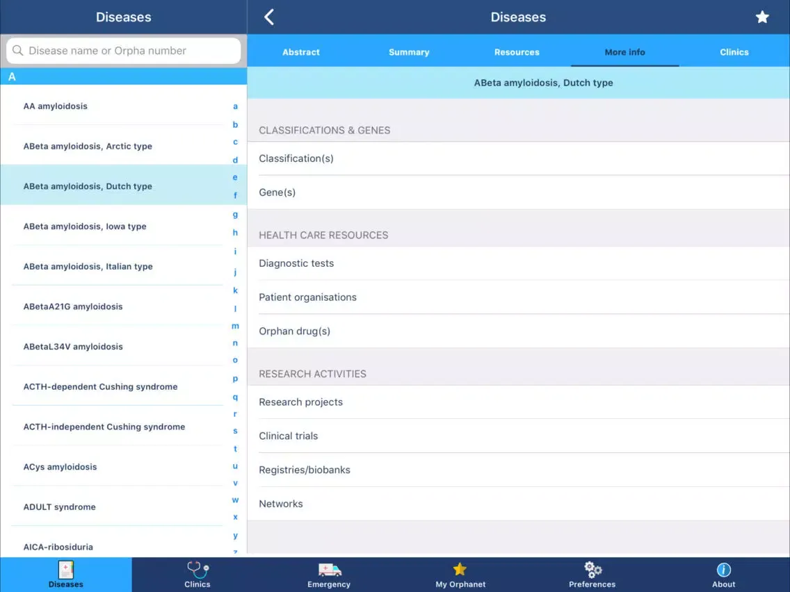 Orphanet iPad スクリーンショット