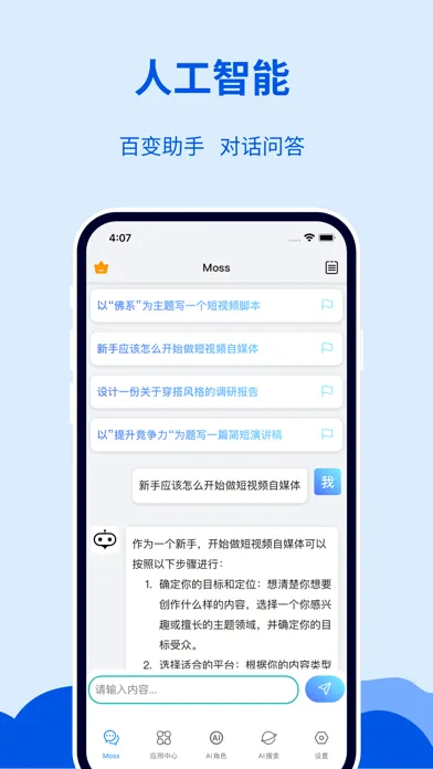 Moss AI - 中文版AI人工智能聊天文案创作机器人应用截图