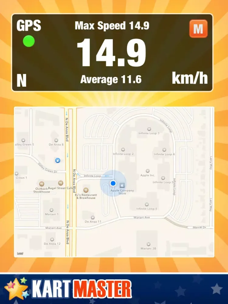 Great tracking application for all fans of karting. You can measure your average, current or maximum speed, coordinates, moving direction or find yourself on map.