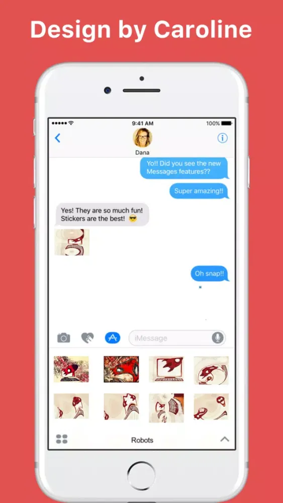 Robots stickers are designed by Caroline Scheibel and powered by MojiLaLa.