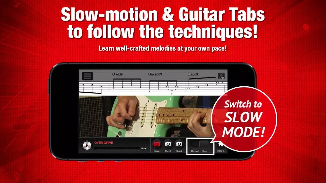 - Slow-motion & Guitar Tabs to follow the techniques!