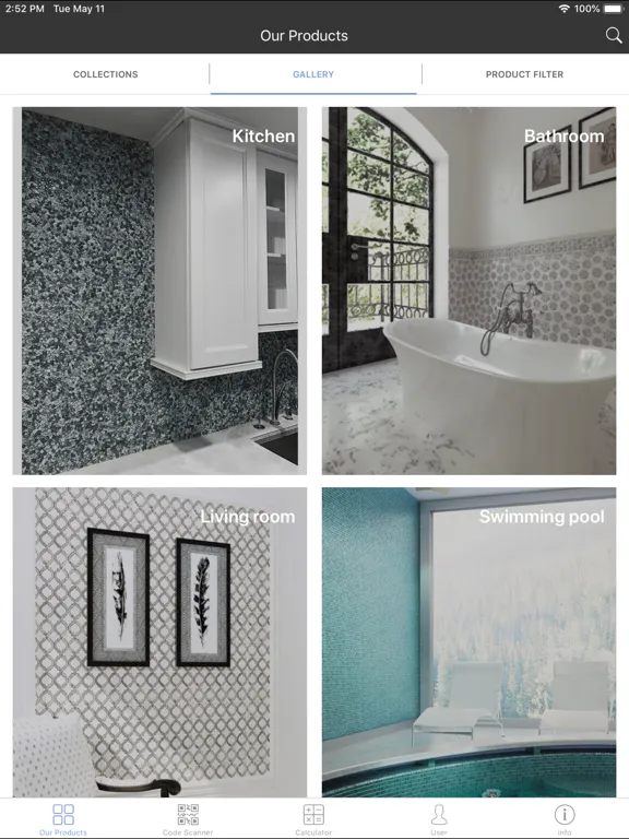 Mir Mosaic app is a great tool for helping you find the right tile for any project. Simple to use and packed with benefits for homeowners and our dealers alike it includes detailed specs for all our products with pictures of installations, product filters, area calculator and many other great features.