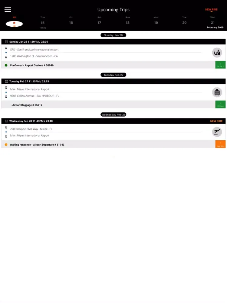 - Switch ride stages from: accepted, on the way, at location, and drop off