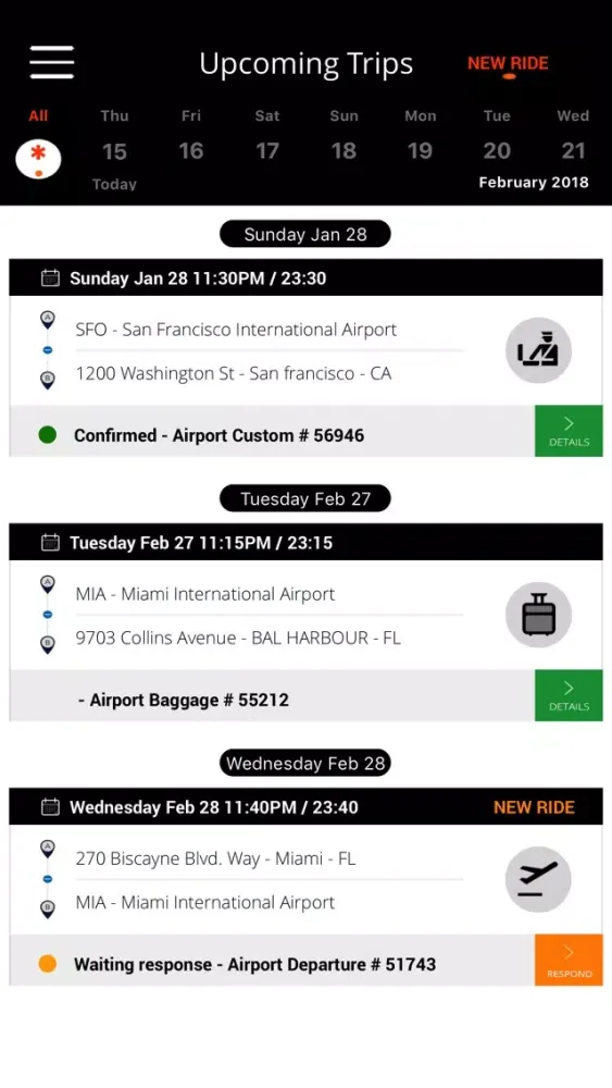 The most efficient way to keep in touch with both dispatch and passengers at the same time. Simply open the app and instantly glance at all the rides that have been assigned to you. You can accept or reject each ride, which gives you great control over your own schedule. Each ride has an information card that lets you know ride number, service type, vehicle class, passenger name, number of passengers, luggage count, and special occasion. Within the same card, you can call or SMS your passenger at the touch of a button.
