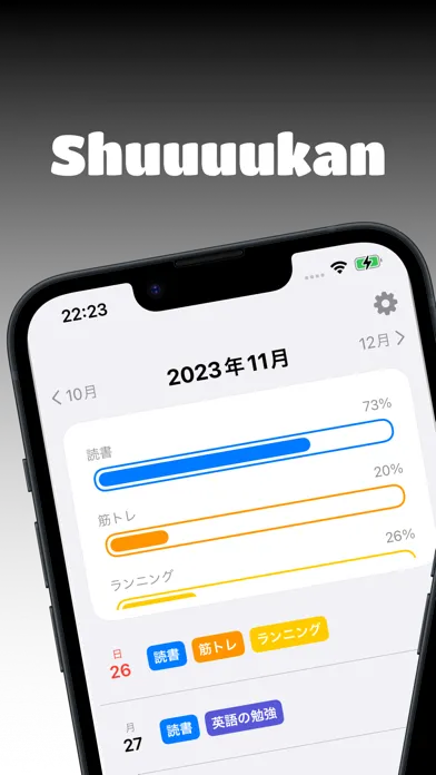 "Shuuuukan" is an app where you can easily record what habits you've done and easily check them on a list of dates.