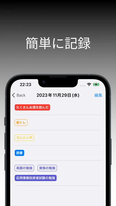 Simply tap on a habit to record it. Additionally, recorded habits can be easily reviewed on a list of dates, allowing you to easily grasp your progress.
