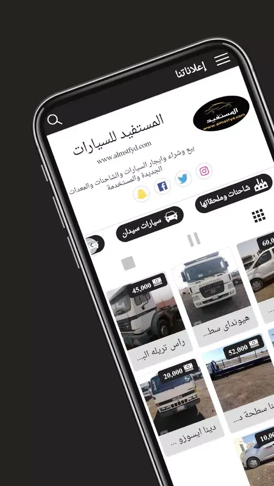 بيع وشراء وإيجار السيارات والشاحنات والمعدات الجديدة والمستخدمة.