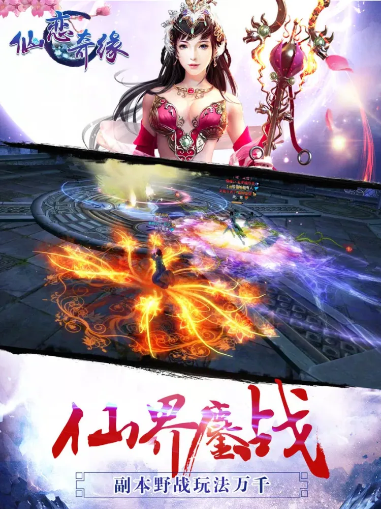 《仙恋奇缘》高清画质ARPG仙侠PK手游——突破传奇经典沸血来袭!延续经典,以嗜血PK,万人城战为特色, 除安全区以外处处都是战场,随心所欲的热血PK战斗在这里得到绝对传承。