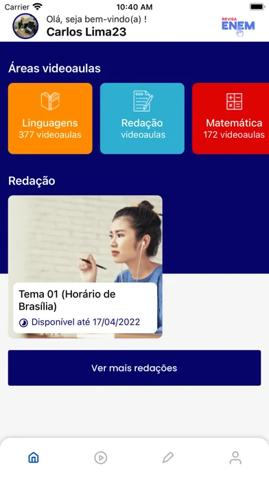 Nós vamos acompanhar você em todos os momentos, desde redações às videoaulas. O aplicativo é feito pensando em melhorar seu desempenho e ser um suporte para os seus estudos.