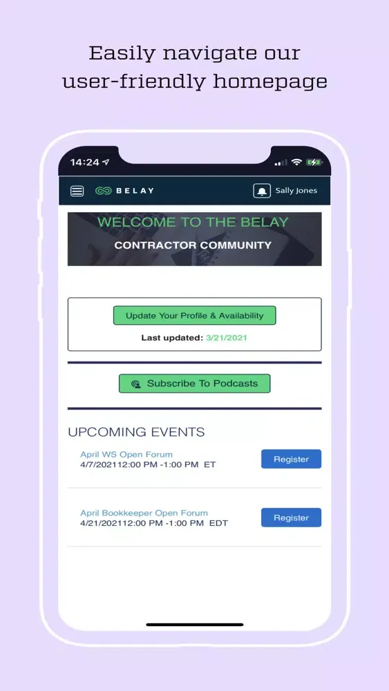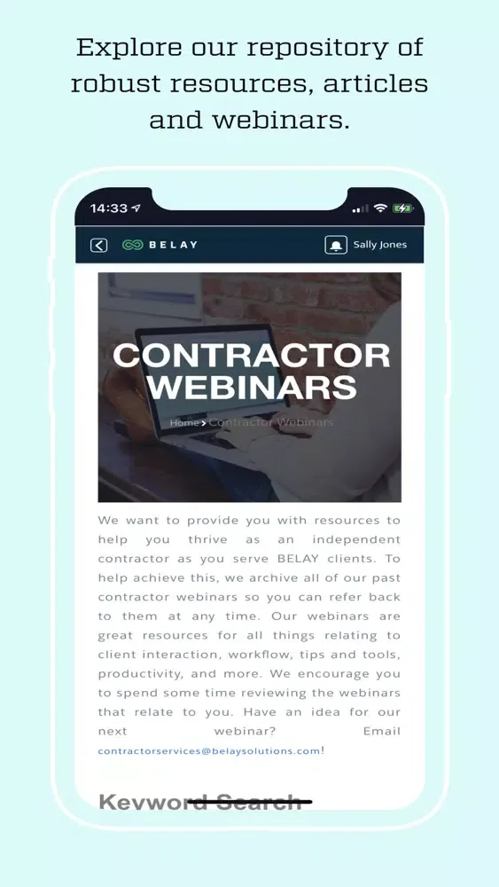 With it, you can apply for a new client on its integrated job board, review your contract information, connect with the BELAY team, and have one-click access to our knowledge base and Chatter, putting everything you need conveniently at your fingertips.