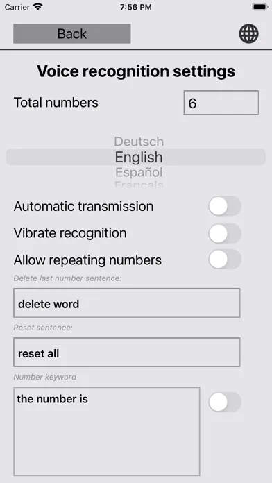 Start saying numbers and they will be sent to the CUPP automatically. Languages supported are English, Spanish, French, Italian, German, Portuguese and chinese.