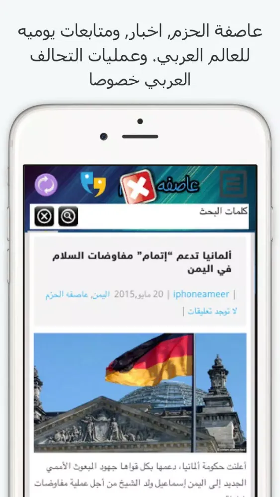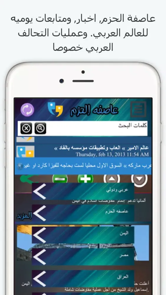 عاصفه الحزم, تطبيق اخباري مخصص لعميلي عاصفه الحزم في اليمن. عبر تطبيق عاصفه الحزم يمكنكم متابعه اهم الاخبار المتعلقه بعاصفه الحزم علئ مدار الساعه.