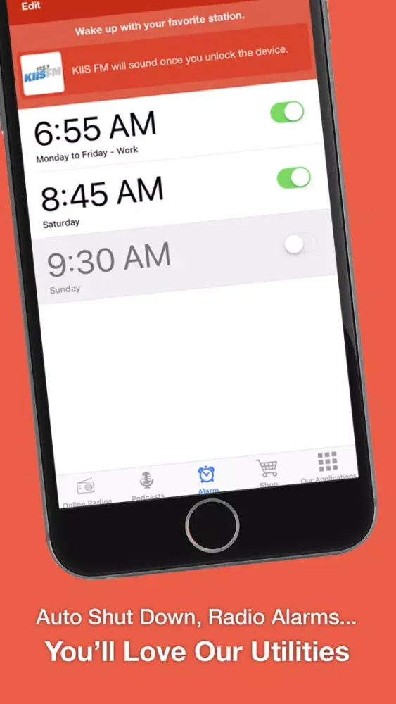 * Automatic sleep timer to fall asleep listening to your favorite station.