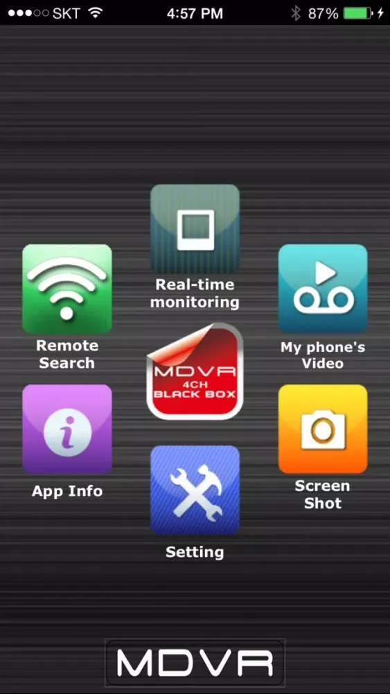 This application works with the blackbox 4CH HD MDVR and the real time monitoring is possible and also it supports searching and playing the recording data. User may setup the menu, format SD card and upgrade the firmware.