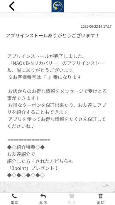 NAOsのアプリをSNSを通じてお友達に紹介する事ができます。