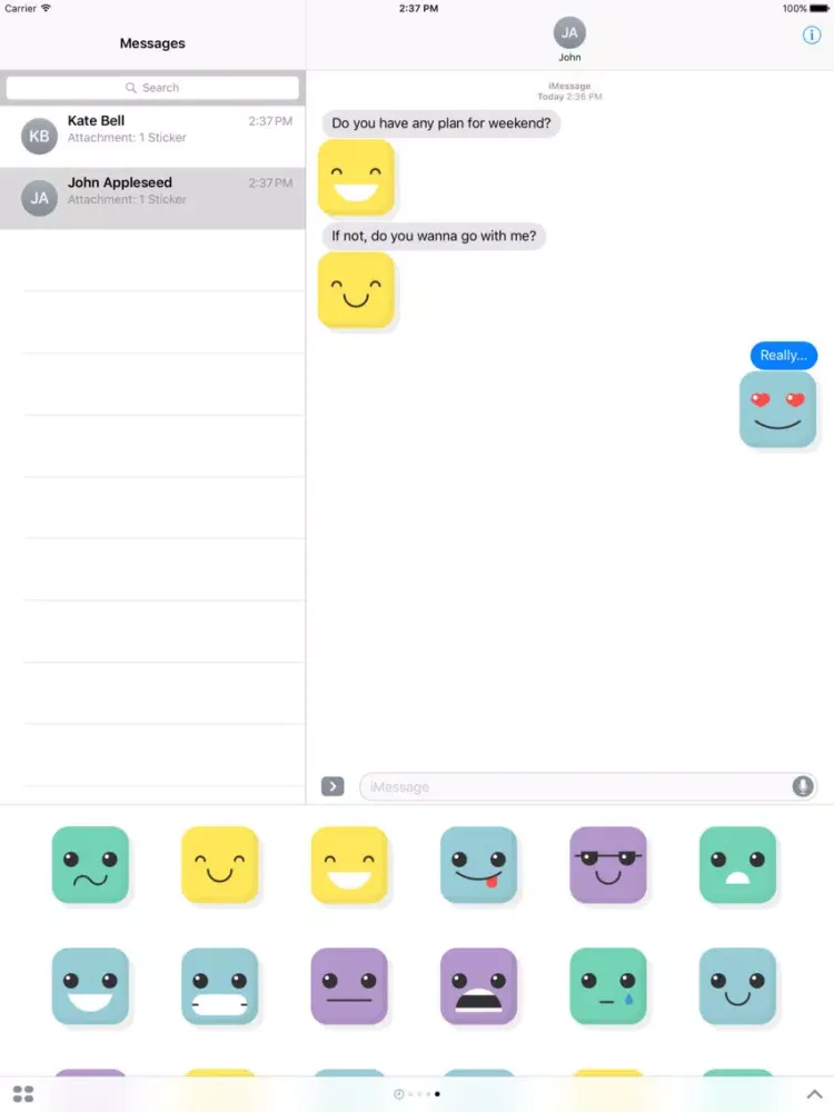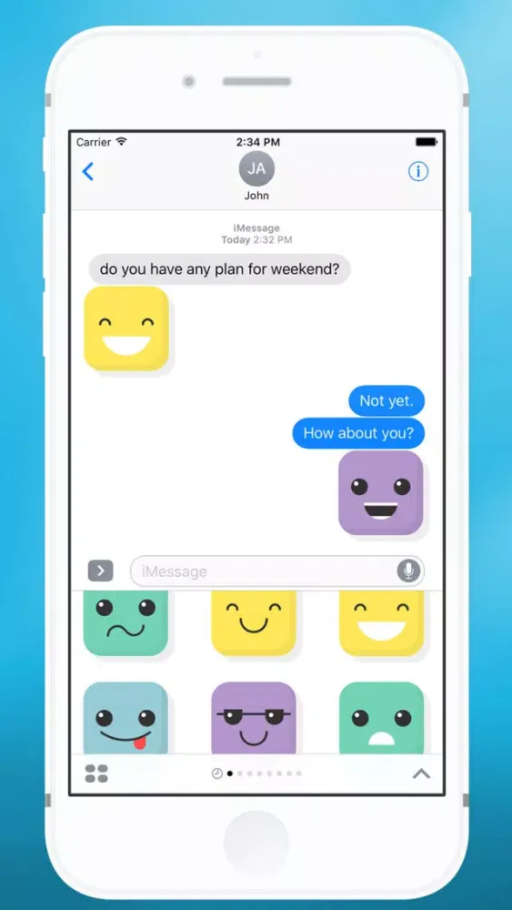 Get your 25 Square Smiler Stickers for iMessage on iOS 10. The Square Smiler can cover any emotion. And now you can choose Square Smiler Sticker and send with one tap in iMessage on iOS 10 without toggling between emoji keyboards!. Personalize your text messages with Square Smiler Sticker!