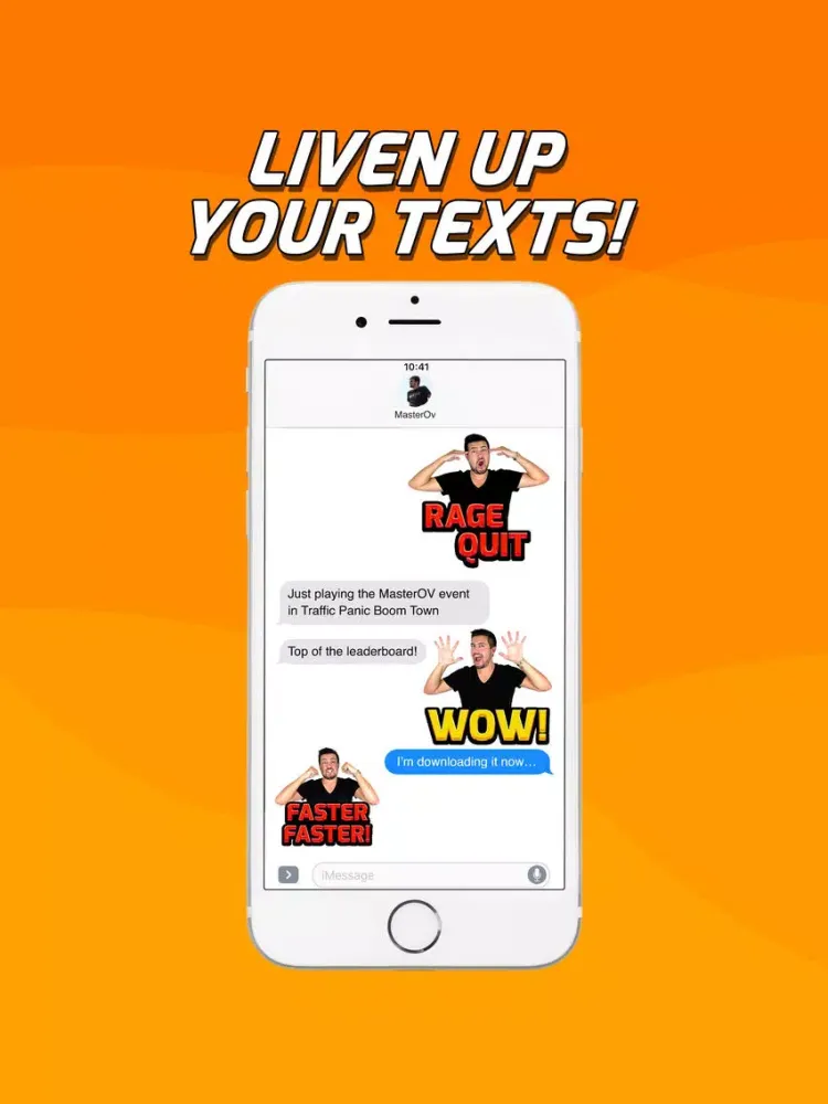 Featuring YouTube gaming superstar MasterOv, hack your text messages with over 30 colourful picture stickers and phrases from the Master himself. Go download them!