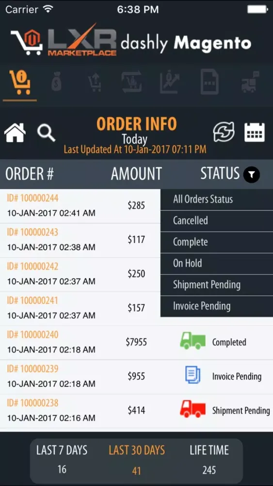 1. Filter and View orders of last 7, last 30, last 90 days.