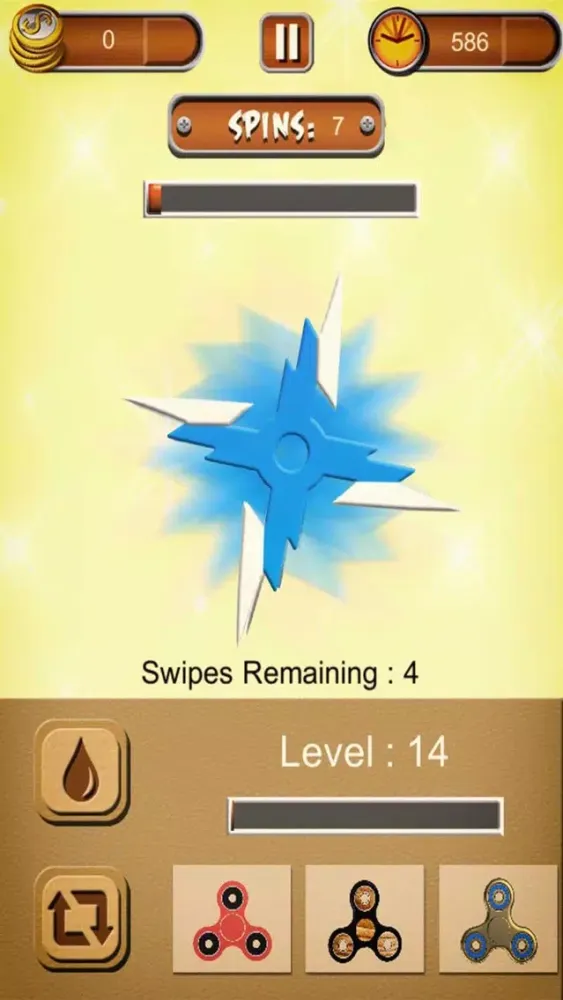 Put your finger to rotate it or flip it as it spins just like a real one see how many spins you can get in specific seconds and challenge yourself to purchase spinner speed and grease your wheels with maximum coins collection also challenge yourself to achieve high score and share your best scores with your friends.