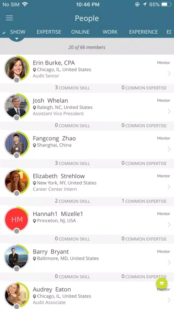 Search for alumni by location, company, experience and