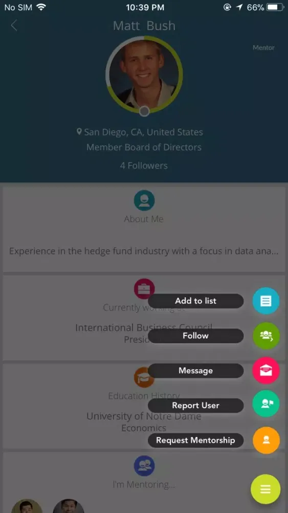 professionally for potential mentors to connect with