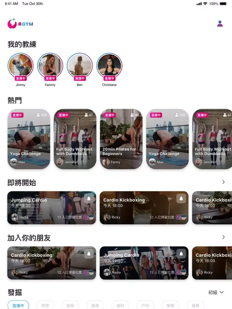 健身、瑜伽、操肌不一定要在gym啦!現在只要一app在手,即時有教練免費教你。蘋果日報旗下,一個互動專屬Fitness App「果GYM」,直播教練開班上堂,即時與教練互動,與你同步一齊做。健身從此不限時,不限點。