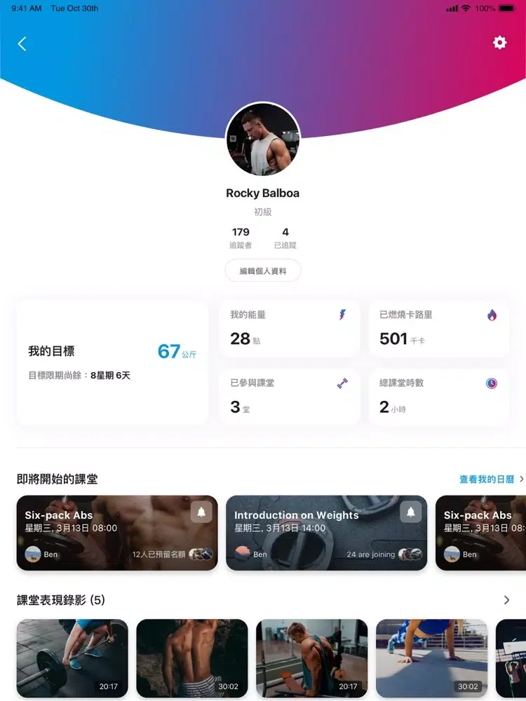 錯過直播不用怕。各不同項目均有訓練短片,讓你按自己時間,24x7隨時操fit自己。亦會根據你的健身程度和興趣推薦合適短片給你