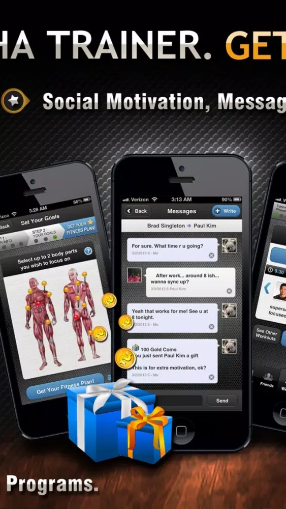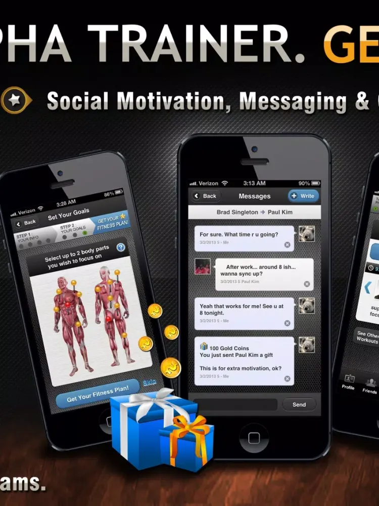 Alpha Trainer is also the first and only app to introduce Social Motivation through your close friends via Motivation Partners, who keep you motivated and accountable to work out by sending you messages, encouragement, and gifts directly from our app! If you’re like most people, having a group of close friends who are accountable for you is among the most effective ways to get in shape, and Alpha Trainer enables this for you!