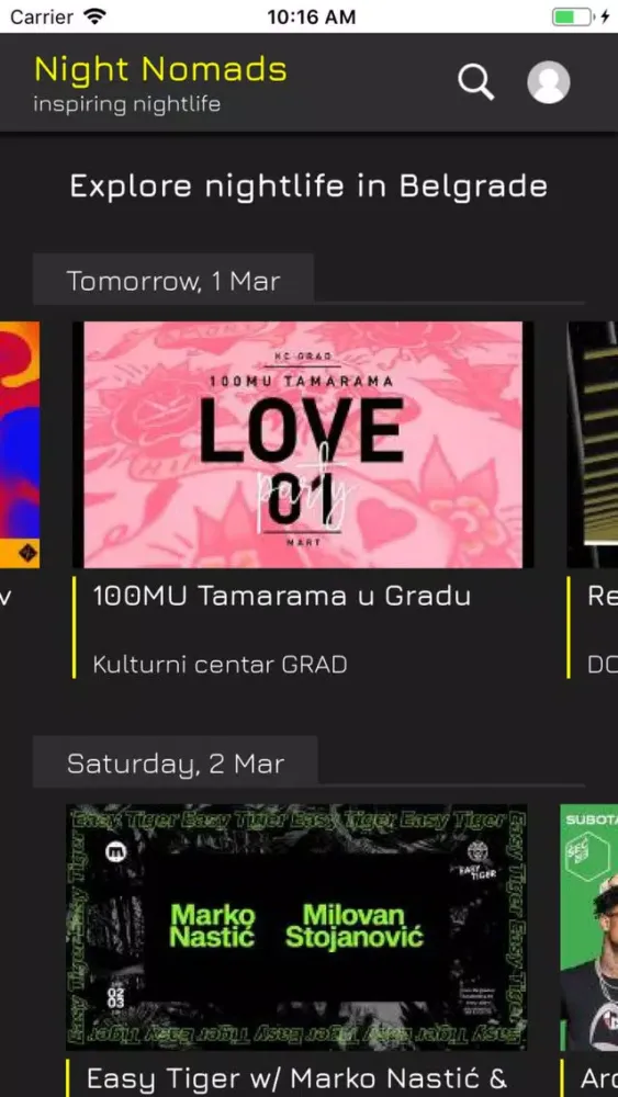 * Find the best parties, gigs and concerts nearby.