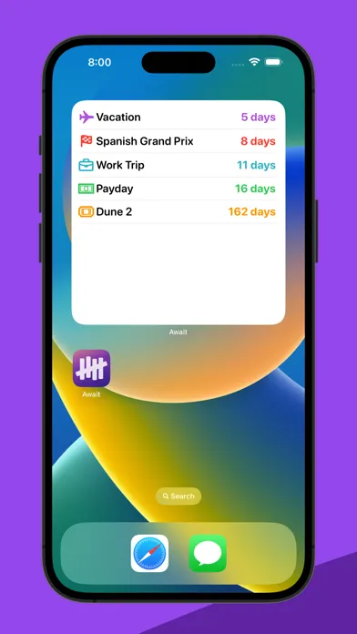 See your countdowns on your Home Screen by adding the Await widget to it.