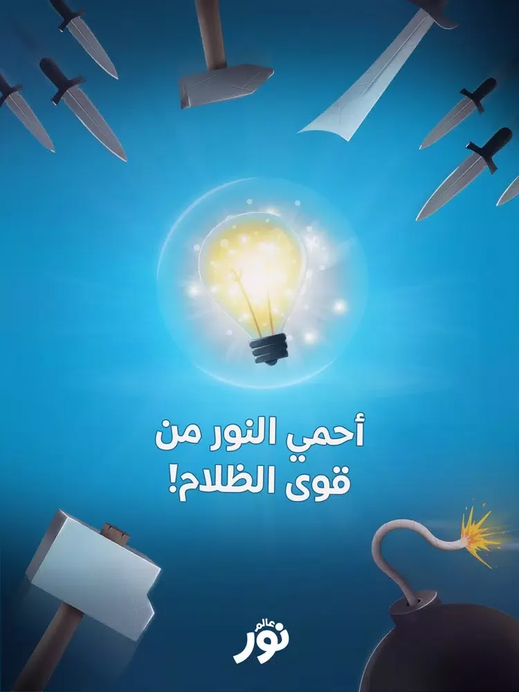 يقدم "عالم نور" ، لعبة "أنا نور". جرب المغامرة واستعد للدفاع عن النور، بإبعاد اللمبة عن خطر القنابل والسيوف والقضاء عليهما.