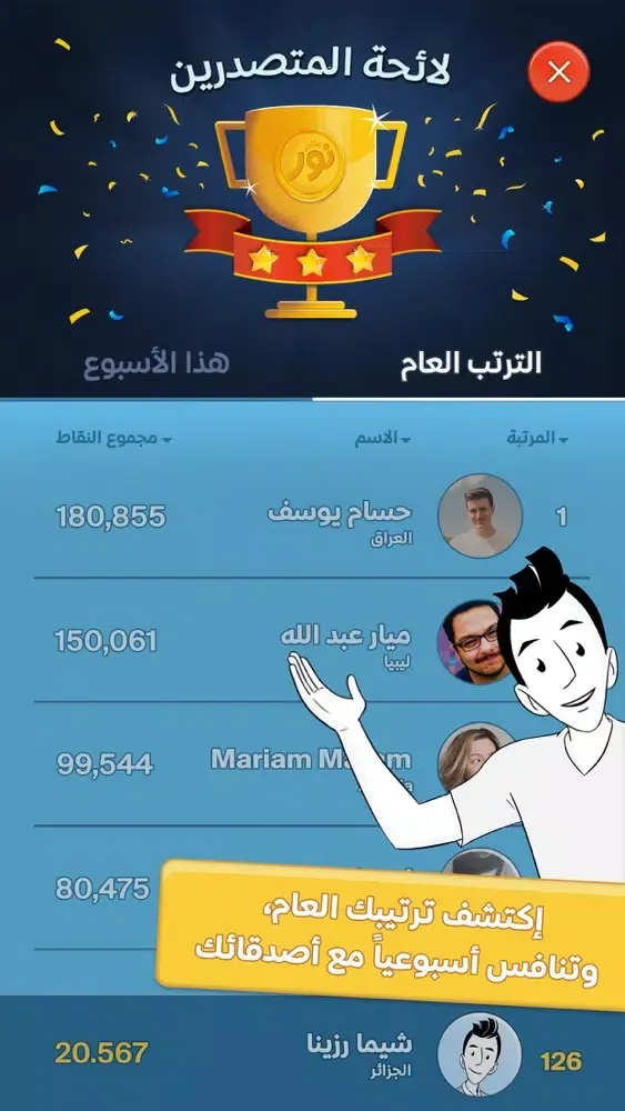 للمتصدرين الأُول جوائز خاصة من عالم نور على صفحة الفايسبوك