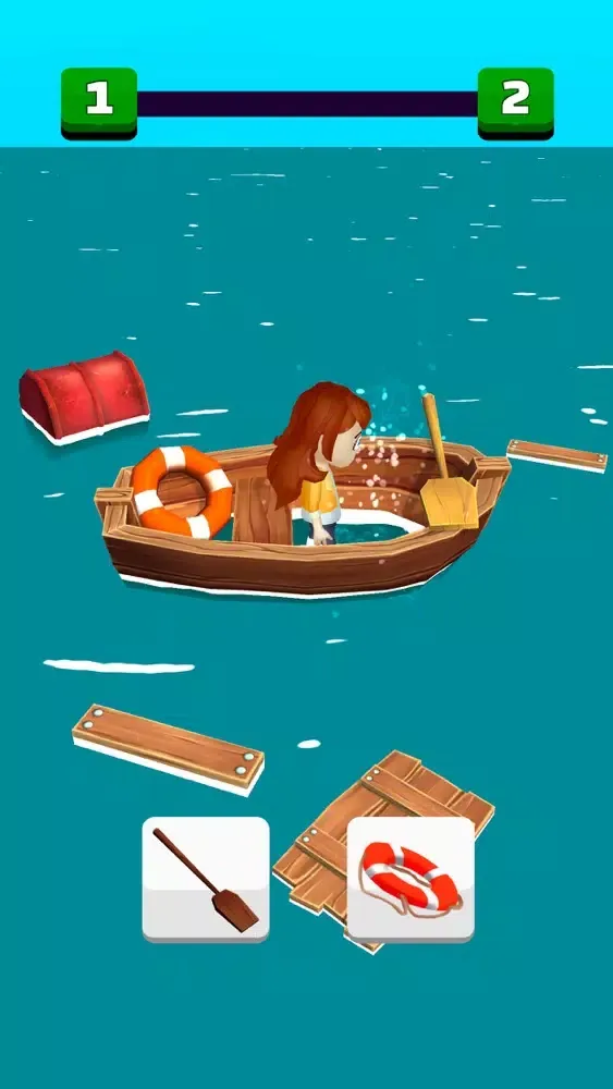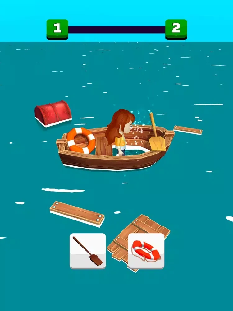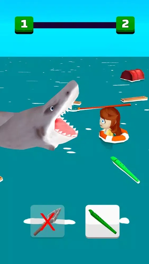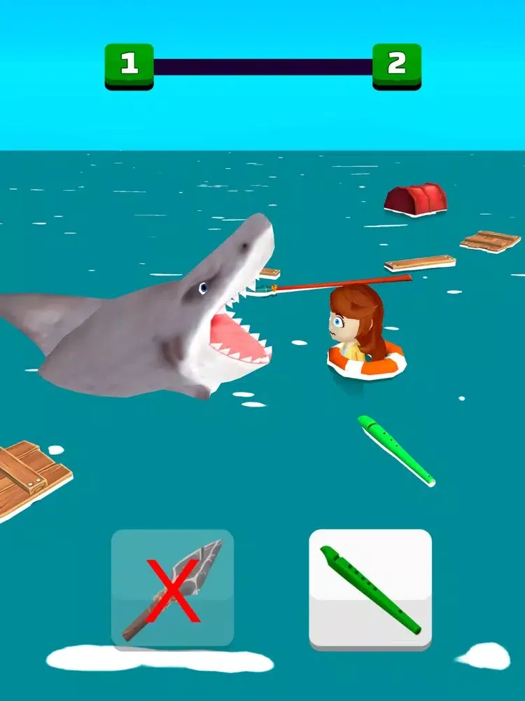 Oars or swimming ring? Axe or stone? The choice will help you through, or eaten by sharks.