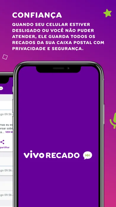 Confiança: Quando seu celular estiver desligado ou você não puder atender, ele guarda todos os recados da sua caixa postal com privacidade e segurança.