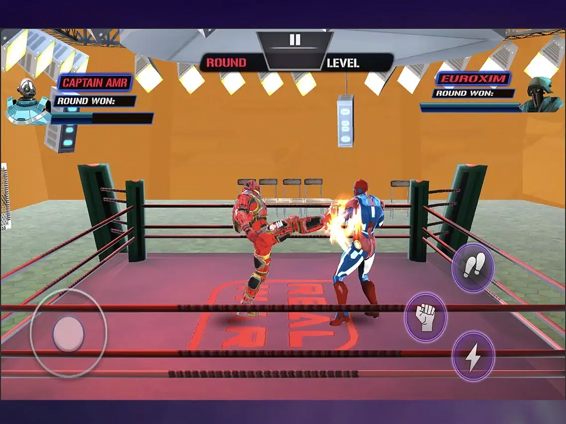 Start and enter into fighting ring and enjoy robot vs robot competition in robot ring war. Unleash robot ring fight with special moves like kung Fu, walk, karate, kick and punch and level up your grade with super moves hero gameplay in robot fighting.