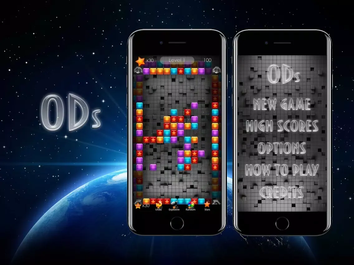 "ODs" is great time killer for all ages players. Special to all who loved that games and want spend free time with addicted gameplay. "ODs" is colourful fast passed puzzle game, our popular game is back to iOS! If you have free minute for play, you can start that game and paused when you need. Beat your friends high scores in Game Center. Use power-ups for increase your high score. Choose 3 types of gameplay in one game app, you can select your favorite gameplay mode and select 3 types of difficulty.