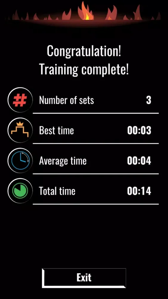 Fortunately, I am not only a sport enthusiast, I also work as a programmer and I am a member of OkToGames team of like-minded developers. Our team has developed this simple app that utterly solved the above problem for me. Basically the app just counts the sets for you. There is no need to remember your current set because the set number is displayed with a large font. To move to the next set, you just need to tap the screen of your device. In addition, the app keeps track of statistics: time of set, average, minimum, maximum, total time, etc.