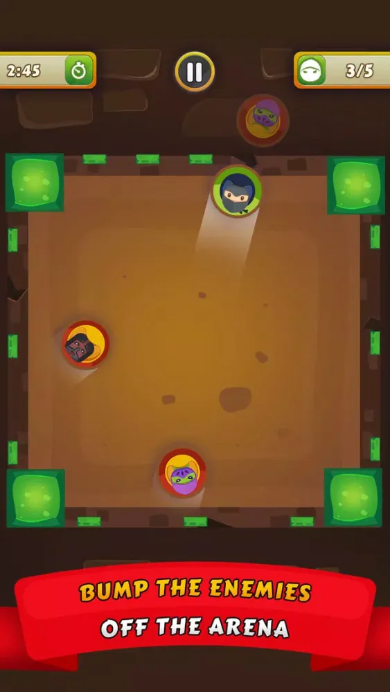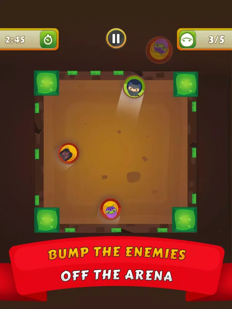 Play the level mode to progress different themes and fight with different clans or play endless to test your skills and see how many enemies you can bump off in a single battle.