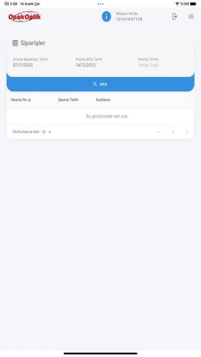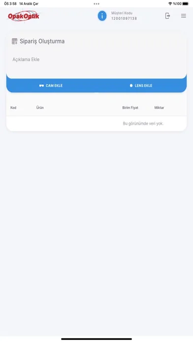 Opak Optik Sipariş Ekran Görüntüleri